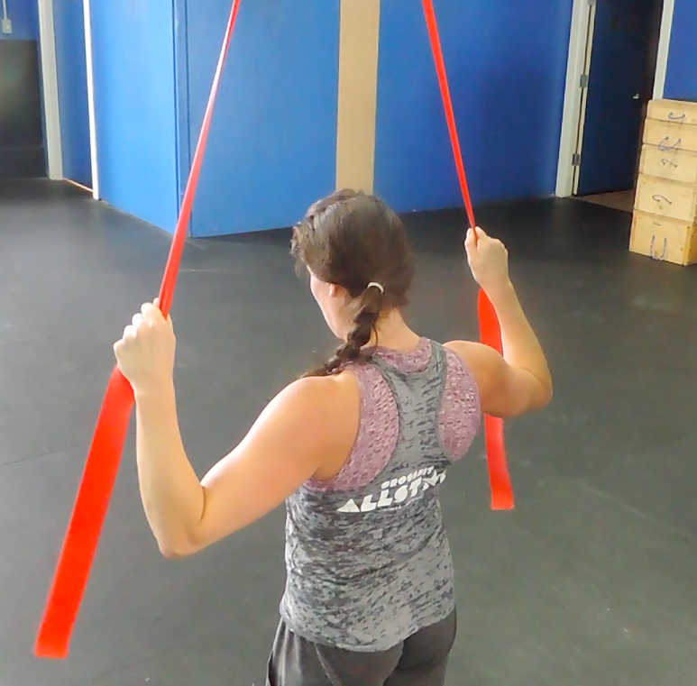 Again, if you don't feel burning in your delts and your lats, then you're moving too fast. Or your hands are too far apart on the band; put them closer together to increase the tension and difficulty.